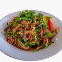 Made with minced beef or pork, seasoned with spices, herbs, and toasted rice powder
