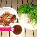 Grilled pork ears set with vegetables, our special house-made sauce and Pepsi