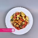 Rice noodles, eggplant, long bean, tomato, fermented fish sauce and vegetables