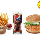 ໄດ້ ເບີເກີ ້ສະເຕັກໄກ່ 1 ອັນ, ເຟນຟຣາຍ 1 ອັນ ແລະ ເປບຊີ 1 ປ໋ອງ